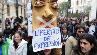 Alfonso Lázaro de la Fuente y Raúl García, los dos titiriteros investigados por un delito de enaltecimiento del terrorismo, han vuelto hoy a sacar sus marionetas a la calle para representar tres obras cortas ante unas cien personas que han reclamado su absolución en la causa judicial.