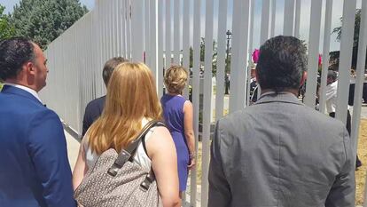 Aguirre estuvo hasta que la cúpula policial hizo su homenaje a los caídos en el monolito instalado en la Ciudad de la Seguridad. Eso sí, por fuera de la valla y con mucho calor. Esperó a que terminara el himno nacional. Después se marchó indignada.