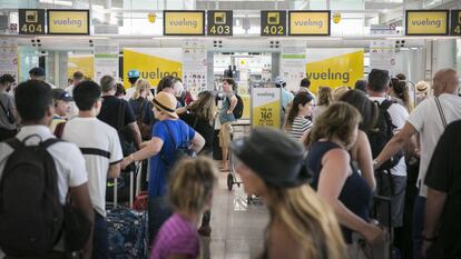La sensación que recorría las interminables colas que se formaron ante los mostradores de de Vueling era de una tremenda impotencia. Ninguna pantalla alertaba de retrasos o cancelaciones. Nadie del personal que atendía las filas daba información ni tranquilizaba con buenas noticias a los pasajeros que aguardaban desde hacía horas. Sin embargo, una vez cruzado el control de pasaportes, la mayoría se encontraba con la realidad de los monumentales restrasos y el desentendimiento absoluto de la compañía.