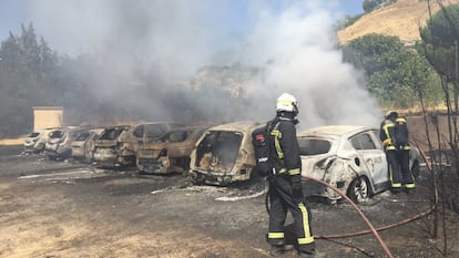 Un incendio cerca del aeropuerto de Barajas calcina 32 coches