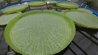 La apertura del nenúfar 'Victoria cruziana' de Vigo, único visitable en el país, se interrumpe ante la expectación del público y las cámaras. Sus cuidadores creen que pudo deberse a la niebla