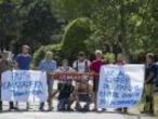 Durante la protesta se vivieron algunos momentos berlanguianos. Como cuando una mano sujetando un teléfono móvil asomó por una ventana del Ayuntamiento para, presumiblemente, grabar la manifestación. Los vecinos, al percatarse, pidieron, en varias ocasiones, que el alcalde diera la cara. El primer edil está de vacaciones. Otra situación curiosa la ha provocado el megáfono de los manifestantes, que tras fallar en varias ocasiones –"más que una escopeta de feria"– ha sorprendido a todos emitiendo el sonido de una sirena en un par de ocasiones. "No se oye", se han quejado varios vecinos. Los ponentes han recordado que lo importante era la concentración.