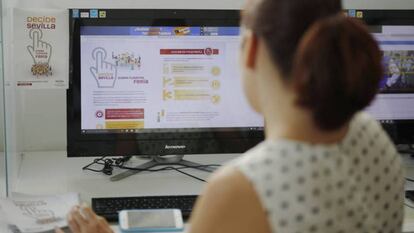 Bajo la acechante sombra de unas terceras elecciones generales, los sevillanos vuelven esta semana a las urnas. Pero la papeleta no es política. Ni física. Más de medio millón de ciudadanos mayores de 16 años y empadronados en la capital andaluza están llamados a votar de forma telemática para decidir si alargan un día la próxima Feria de Abril. La consulta ciudadana, cuya plataforma virtual se ha colapsado en los primeros minutos, se prolongará hasta el viernes.