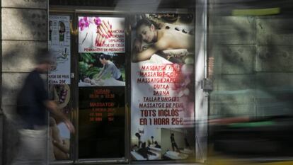 La habitación de Mimi huele a aceite de bebé y está iluminada con una luz rosa. En la repisa tiene un rollo de papel tamaño industrial que extiende sobre la camilla y un par de toallas que reutiliza con cada cliente: unos cinco al día. Los 15 euros del masaje son para su jefa; ella se queda con la propina de lo que pueda venir luego: entre 10 y 20 euros, dependiendo de cómo lo haga. Le da pánico que le peguen algo, explica en un precario español mientras recorre con un vestido negro el largo pasillo con habitaciones a un lado y otro. Trabaja en uno de los más de 100 salones de masaje chinos con final sexual que hay Barcelona, según los Mossos d’Esquadra. Hay tantos, que empiezan a ser una atracción turística. El suyo está cerca de Sants y en el escaparate ofrece estilismo de uñas y peluquería. No le gusta, desliza, pero ahora tiene contrato y un horario de trabajo. Y el camino hasta aquí ha sido muy largo.