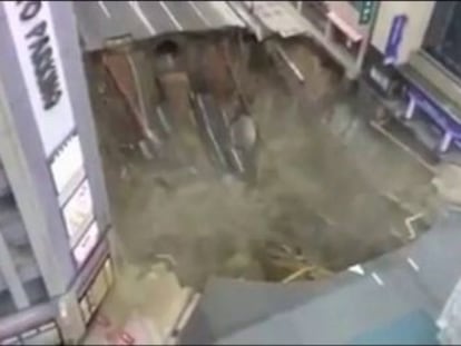 El hoyo corta tres carriles de la Avenida de la Gavia, una de las arterias principales de la zona