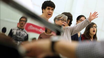 Los chicos del Coro Abierto, un grupo de músicos con discapacidad intelectual, marcan el ritmo de la canción que practican golpeando con la mano cerrada la palma de la otra. Pam, pam, pam. Unos acordes de piano marcan la entrada de la voz y empiezan a cantar: “Amásalo bien, amásalo bien. Quiero llevar un buen pan a Belén”. El conjunto musical prepara los villancicos Adeste Fideles y Vamos a escuchar al viento en su último ensayo antes del concierto que darán este lunes en el Auditorio Nacional juntos al coro y a la orquesta profesional.