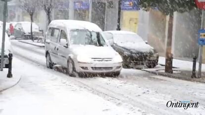La Policía Local de Villena recomendaba el uso de cadenas en el casco urbano. La nieve, tan poco frecuente en esta zona del sureste peninsular, ha dejado durante las últimas horas estampas insólitas con playas blancas desde Dénia hasta Torrevieja.