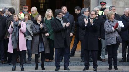 Una cura magnífica contra esa "perversión" fue el proceso del 9-N y de ahí que Mas, Ortega y Rigau hayan acabado ante los tribunales, ha explicado Pugdemont, que ha recibido a los tres en la Generalitat antes de iniciar a pie el camino hacia el Palacio de Justicia de Barcelona acompañado de buena parte de su gobierno, entre ellos el vicepresidente Oriol Junqueras, y de representantes del PDECat, Esquerra, la CUP o Catalunya Sí que es Pot.