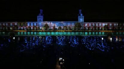 El de ayer fue el video mapping más gran realizado nunca en España y con él arrancó el Ayuntamiento de Madrid los actos del IV centenario de la Plaza Mayor, en colaboración con comerciantes y vecinos. “He visto toros, claveles, llamas enormes”, decía poco después del espectáculo Josefa Fernández, de 81 años, entre aturdida y emocionada. Las imágenes parten del siglo XVI —cuando la plaza era un pequeño lago en el extrarradio de la villa, donde los monarcas cazaban patos— y recorren coronaciones, fiestas barrocas y goyescas, mercados, corridas de toros, los incendios que devastaron edificios e incluso las ejecuciones que tuvieron lugar aquí. La música de Ruben Kielmannsegge alterna toques barrocos y épicos para eclosionar al final con una orgía de sonidos electrónicos mientras los proyectores juegan con los balcones de las fachadas, los derriten, los desladrillan y los empiedran, para al final mostrarlos como eran hace tiempo —antes de las reconstrucciones de la plaza— antes de los incendios.