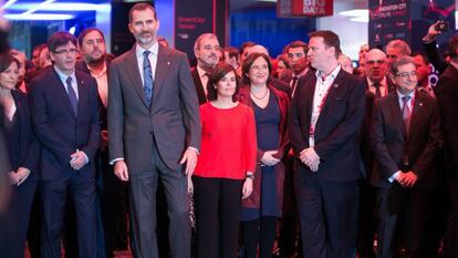 Este ha sido uno de los puntos del paseo de las autoridades para inaugurar el Mobile World Congress, el congreso de móviles más importante del mundo que se celebra hasta el jueves en Barcelona. Puigdemont y el Rey han visitado la feria acompañados, entre otros, por la vicepresidenta Soraya Sáenz de Santamaría, la alcaldesa de Barcelona, Ada Colau, el vicepresidente de la Generalitat, Oriol Junqueras, y la presidenta del Parlament, Carme Forcadell.