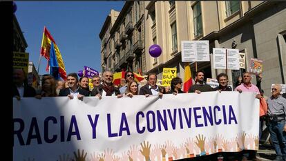 Los asistentes a la marcha, convocada por Societat Civil Catalana, piden "parar el golpe" del Gobierno catalán