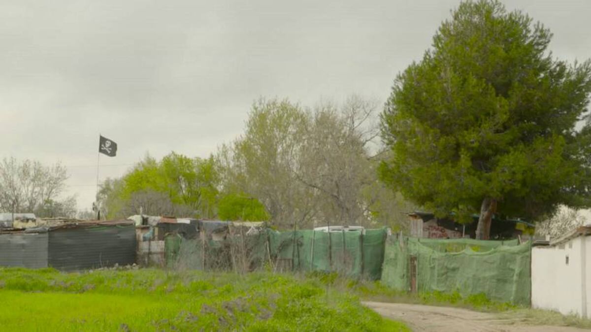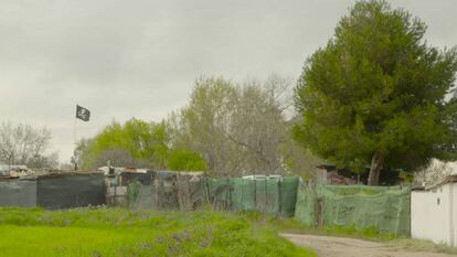 A unos pocos kilómetros del puente de Mejorada, justo detrás del estadio del San Fernando de Henares, sale un camino que llega hasta una veintena de parcelas valladas en la misma orilla del Jarama. Algunas guardan apenas rudimentarias casetas alrededor de una huerta; otras, sin embargo, protegen auténticas viviendas que más de uno llamaría, sin dudarlo, chalés. Si no están en la zona de servidumbre (los cinco metros más cercanos, reservados para usos de vigilancia, pesca y salvamento), sin duda están todos en la “zona de policía”, los 100 metros colindantes en los que está muy restringida la construcción. “Es evidente que están ocupando la ribera”, dice Martínez. Al fondo, sobre una de las construcciones ondea una bandera pirata.