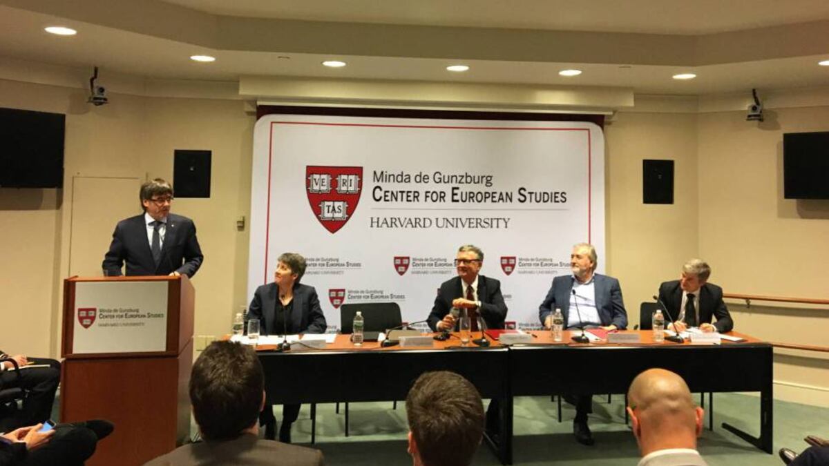 Puigdemont describe en Harvard a España como un país atrasado y coercitivo