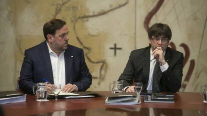 El proceso judicial que se inició por ello ha acabado con la condena por inhabilitación contra el expresident y tres consejeros de su gobierno. A diferencia del referéndum prometido por Puigdemont, la consulta originaria del 9-N se trabajó a conciencia. Los preparativos comenzaron año y medio antes por el departamento que dirigía la consejera de Gobernación y vicepresidenta, Joana Ortega. Cuando el Constitucional la prohibió se redefinió el diseño inicial y la Generalitat dejó para el último momento los contratos a empresas privadas.