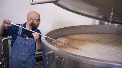 El proceso de elaboración es más pausado que el industrial y sin proceso de pasteurización, por lo que la bebida caduca antes. “Fermentamos en abierto. Ya ninguna cervecera lo hace así, pero es una manera de tener un mejor sabor”, señala Riesgo. El resultado son cuatro cervezas anuales y seis estacionales y especiales. “Las anuales incluyen una lager y la Jamonera, de alta fermentación. Entre las especiales destaca una llamada De Castañas, que elaboramos en otoño, y una más fresca, de trigo [Trigo limpio], que sacamos en verano”, cuenta el fundador.