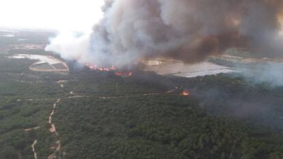 "Todo se junta para que el incendio tenga aires de catástrofe", ha señalado Miguel Delibes, presidente del Consejo de Participación de Doñana. Pero ha pedido prudencia sobre el avance del fuego y sobre las consecuencias en el espacio natural.