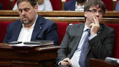 Los vaivenes del Gobierno de Carles Puigdemont para lograr la independencia se evidenciaron como nunca durante este miércoles, en el que se produjo un goteo de anuncios en cuestión de horas. En la sesión de control en el Parlamento catalán, Puigdemont ratificó que Junqueras seguía siendo el responsable de organizar el referéndum, porque así se lo encargó tras la cuestión de confianza de septiembre de 2016.