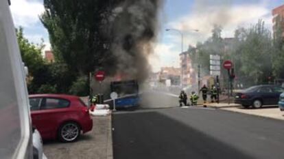 Se incendia un autobús de la EMT tras bajarse los pasajeros y el conductor