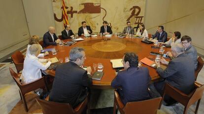 Después de constituir un Gobierno con consejeros fieles a la independencia hasta el final, la Generalitat ha iniciado este martes una nueva etapa de secretismo para tratar de esquivar las decisiones judiciales. Así, el Ejecutivo de Carles Puigdemont anunció que la compra de las urnas para el referéndum se había debatido en la reunión semanal, pero se negó a dar ningún detalle hasta que no se complete el proceso de adquisición. El nuevo portavoz de la Generalitat, Jordi Turull, justificó el silencio ante el “asedio” que practica el Gobierno “por tierra, mar y aire con armas no convencionales” que, en su opinión, “van a más”.