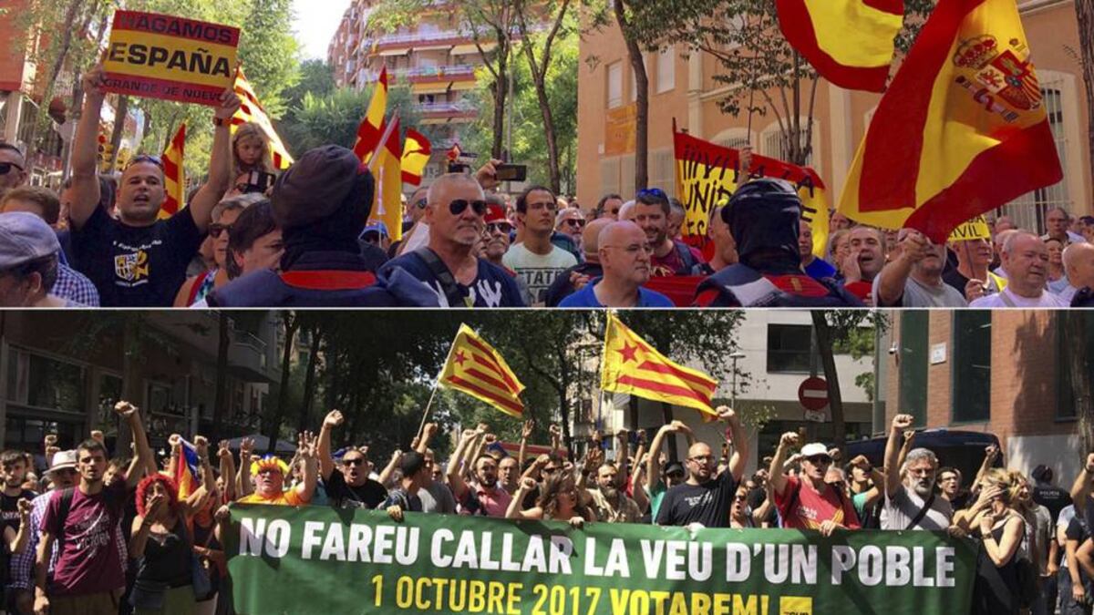 Entre los primeros, había las diputadas de la formación anticapitalista Anna Gabriel, Eulàlia Reguant, y Mireia Vehí. En el otro lado de la calle, se ha dejado ver el ultraderechista Josep Anglada y representantes de Democracia Nacional y la Falange Española de las JONS. Lo que inicialmente eran concentraciones a favor y en contra de la Guardia Civil, han acabado en cánticos sobre la independencia, el referéndum y España. "¡Pujol y Puigdemont, la misma mierda son!", "¡hagamos España grande de nuevo!" o "¡no votaréis!", se podía oír desde un lado de la calle. En el otro respondían con gritos a favor de la independencia.