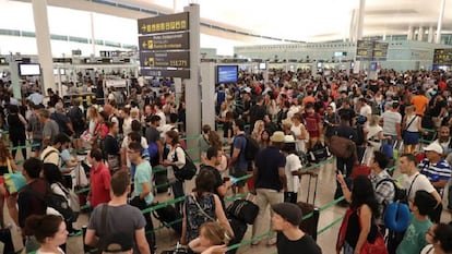 Los empleados de Eulen encargados de los filtros de seguridad en el aeropuerto de El Prat, en Barcelona, han acudido a la huelga este viernes. El conflicto laboral ha explotado en plena operación salida de agosto. Un audio confirma la huelga de celo que los trabajadores siempre habían negado: "Si hay colas, todo está ganado", dijo una portavoz del comité de empresa. Las colas en los controles de pasajeros han alcanzado este mediodía la hora de espera en la terminal 1 y casi han llegado a las dos horas en la terminal 2, según fuentes de Aena. Esta tarde, el tiempo de espera ha disminuido y a última hora la situación era de práctica normalidad. Si los representantes de los trabajadores de Eulen y la dirección de la empresa no llegan a un acuerdo este viernes, los días 6, 7, 11 y 13 de agosto volverá a haber paros parciales.