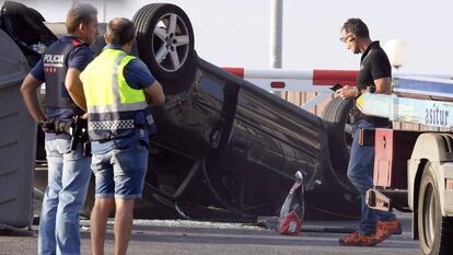 Dice el auto que el 17 de agosto, a las 15:25 y por tanto una hora y cinco minutos antes del atentado en La Rambla, uno de los terroristas, Mohamed Hichamy tuvo un accidente con una Renault Kangoo alquilada en el kilómetro 265 de la AP7, en Cambrils. Cuando el ocupante de otro vehículo se le acercó, huyó por el arcén. Horas antes había explotado una casa en Alcanar, algo que puso a la policía en alerta. El contrato de alquiler de la Kangoo estaba a nombre de Hichamy, igual que otra furgoneta abandonada por los terroristas en Vic. Ambas fueron recogidas en Parets del Vallés. En la furgoneta había abandonada una tarjeta de crédito de otro terrorista muerto en Cambrils: Said AAlla. El ciudadano con el que chocó Hichamy alertó a los Mossos.