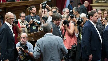A las 15.15 se reanudará la sesión con el orden del día previsto inicialmente y la sesión de control al Gobierno y al presidente de la Generalitat, Carles Puigdemont. Posteriormente se debatirá la ley del referéndum y, tras la votación, está previsto que el Gobierno catalán se reúna para aprobar el decreto de convocatoria del referéndum del 1 de octubre.