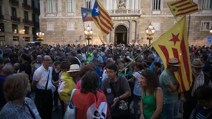 Una hora y media antes de la concentración de Barcelona, el primer teniente de alcalde del Ayuntamiento, Gerardo Pisarello, anunciaba que el Consistorio no iba a remitir a la Generalitat la información que se había requerido sobre los colegios electorales. Este anuncio provocó que los manifestantes que se concentraron en la plaza Sant Jaume (600, según la Guardia Urbana) gritaran la mayoría de sus proclamas contra la alcaldesa Ada Colau.
