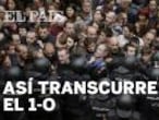Helicópteros, sirenas, convoyes de antidisturbios arriba y abajo, barricadas, estupefacción, hostias; la ciudad cada vez más empapada —solo faltaba ayer la lluvia— y cabreada, muy cabreada. Frente a la barcelonesa escuela del Turó del Cargol, junto al parque Güell, cuando empezaron a circular las noticias de las cargas policiales aún seguía el buen rollo que había imperado desde la madrugada. En cualquier momento las escenas de las pantallas de los móviles se podían repetir aquí, Déu no ho vulgi (Dios no lo quiera), se santiguaba una señora. “Si la policía carga te llevas a papá a casa”, advertía un hombre a su pareja. Dos personas que llevaban una identificación de “observadores de vulneración de derechos en contexto de protesta” repartían octavillas en las que se informaba de qué hacer en caso de detención. Una señora cogió una y, mientras la iba leyendo, palidecía.