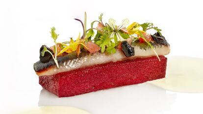 El cocinero describe sus elaboraciones como “cocina de vanguardia con mucha raíz” y lo demuestra en cada uno de los platos. Por su menú largo —el que hay que pedir para disfrutar de una experiencia plena— desfilan un finísmo tuétano con caviar; sardinas sobre una vistosa y sabrosa esponja de remolacha; una espectacular purrusalda de bacalao; tallarines de calamar; merluza asada con consomé de anguila; alubias de Gernika y pichón reposado. García remata con dos postres: uno a base de crema helada de pieles de limón y un soufflé de manzana.