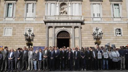 Silencio ahora mismo en Sant Jaume en la concentración que presiden Carles Puigdemont y Ada Colau pic.twitter.com/Q0edQpm5Jl