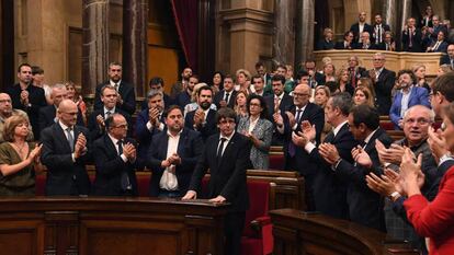 La aseguradora ha enviado sendas cartas a la Generalitat y al Parlament en las que comunica la rescisión de las pólizas, con fecha del 11 de octubre. Según ha podido saber EL PAÍS, la cobertura de responsabilidad civil a la Generalitat tenía dos pólizas. Una para cubrir a todos los trabajadores de todas las consejerías, con un coste de 246.000 euros anuales, y otra solo para los altos cargos. Esta última tenía un precio mucho mayor. Según fuentes del mercado, SegurCaixa estaría dispuesta a renegociar las condiciones económicas de los seguros, valorando la nueva situación creada en el Parlament y en la Generalitat tras la aprobación de las leyes de ruptura con el Estado.