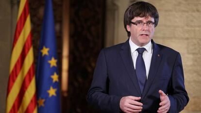 El president no aclaró si finalmente proclamará la independencia en el Parlament, pero dejó la puerta abierta. Pedirá a la Cámara que convoque un pleno en que los diputados debatan y decidan “sobre el intento de liquidar” el autogobierno y la democracia catalanas, algo de lo que ha acusado al Gobierno central. “Y que actuemos en consecuencia”, añadió en su declaración. Puigdemont quiso dar máximo dramatismo a su intervención asegurando que la decisión del Ejecutivo central es “el peor ataque a las instituciones” democráticas de Cataluña desde los tiempos de Franco.