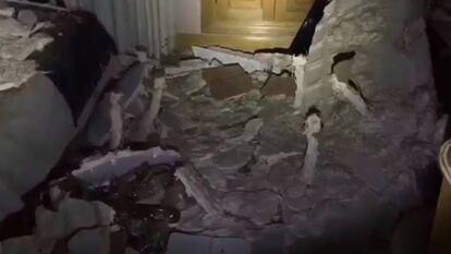 El rayo destrozó la chimenea, entró por el tiro y provocó la caída del techo de escayola del dormitorio