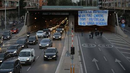 En el sector educativo se ha visto un mayor seguimiento de la huelga y los estudiantes lo han hecho notar desde primera hora. Todavía no había salido el sol en el campus de la Universidad Autónoma de Barcelona (UAB) y un grupo de medio centenar de estudiantes comenzó a desfilar con mesas y sillas por el campus hasta la entrada de la AP-7, que pasa al lado del recinto estudiantil. Durante cinco horas, los jóvenes han mantenido cortados varios carriles de la autopista. A diferencia de otras huelgas, donde hacían piquetes en las puertas de las facultades, esta vez han centrado sus esfuerzos en cortar los accesos al campus. Ellos, por autopista y en Sant Cugat, un grupo de los comités de defensa del referéndum (CDR), han hecho lo propio en las vías de los ferrocarriles. Así, las aulas estaban abiertas pero los estudiantes no han podido acceder al campus. Apenas se han impartido clases y el seguimiento ha sido mínimo entre el alumnado.
