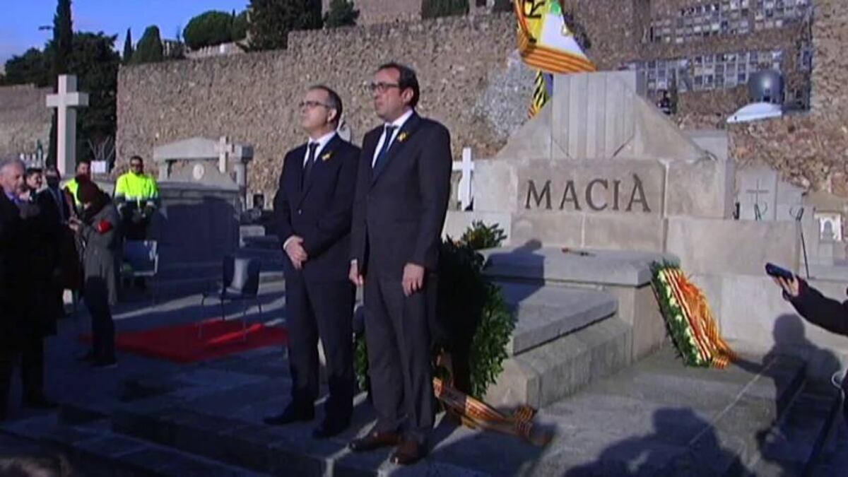 Los partidos independentistas criticaron de forma unánime este lunes el mensaje de Navidad del Rey por no percibir cambios "de fondo" en su discurso respecto al que pronunció el pasado 3 de octubre y aprovecharon para reclamarle la libertad de del exvicepresidente Oriol Junqueras, el exconsejero Joaquim Forn y los líderes soberanistas Jordi Sànchez y Jordi Cuixart. En la tradicional ofrenda a la tumba del primer presidente de la Generalitat republicana, Francesc Macià, el diputado electo de Junts per Catalunya –la candidatura de Carles Puigdemont— Eduard Pujol sostuvo que el Felipe VI “volvió a ser el Rey del 155” y que “voluntariamente o por omisión” obvió “la voluntad de los catalanes en las urnas”. La presidenta del Parlament, Carme Forcadell, quien acudió al acto junto a los miembros de la Mesa de la Cámara catalana Anna Simó (ERC) y David Pérez (PSC) afirmó: "Respeto la opinión del jefe del Estado y también espero que se respeten las opiniones de los catalanes que se expresaron en las urnas el 21 de diciembre".