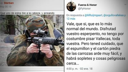 Sin embargo, las críticas han arreciado desde este martes y algunas se han tornado en amenazas: "Tenéis opciones para combatir esta lacra. Huevos, pedradas, ponerse en medio del camino, llamada anónima a la asociación. Las que queráis y más. Solo tenéis que reuniros unos cuantos disconformistas y ya", ha escrito en un foro el usuario Patoaventuras. "Que uno de estos tire a la cabeza y arreando", ha dicho otro mensaje junto a la foto de un francotirador. Desde Orgullo Vallekano dicen que estos mensajes les dan "más fuerza para seguir trabajando": "Vallecas es un barrio de luchadorxs. Venceremos vuestro odio".