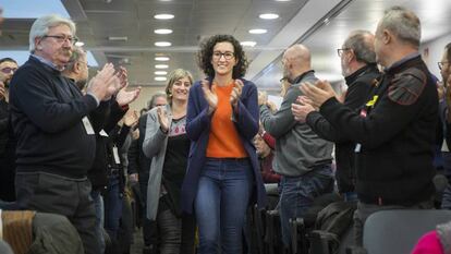 Rovira defendió que es ahora cuando se necesita “más inteligencia y unidad que nunca” y citó dos cuestiones que granjean consenso: el reconocimiento de Puigdemont y la operatividad del Govern. El objetivo, dijo, es recuperar la Generalitat y acabar con el artículo 155 (la intervención de la Generalitat por parte del Gobierno central). “No queremos otro escenario que ese. Es un lastre y lo están desplegando con inteligencia, silencio y en pequeñas dosis”, dijo. Tras revelar que este viernes se reunió con Junqueras en la cárcel donde este se encuentra, invitó a sus socios a imitar el rigor con el que él ejerció el poder. “Es un referente de coherencia y honestidad para este país”, dijo en medio de una ovación.