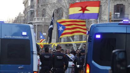 Los partidarios y detractores de la visita del monarca se insultan en las calles cercanas al Palau, fuertemente custodiado por los Mossos