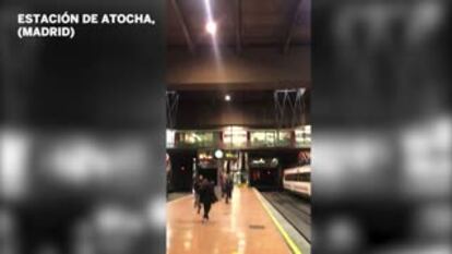 El agua cae desde el techo en la zona de los andenes de la estación de Madrid Cercanías como si fuera lluvia. El diputado de Ciudadanos César Zafra ha compartido hoy un vídeo (que le ha enviado un amigo personal) sobre el estado de la estación hoy y en el que se aprecian las goteras de la terminal principal de Madrid.