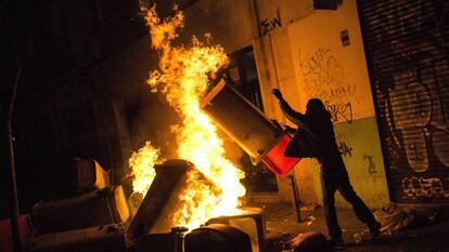 Alrededor de las 20.20, la Policía Nacional envía agentes de la Unidad de Intervención Policial (UIP, antidisturbios) y de la Unidad de Prevención y Reacción (UPR). Empiezan los disturbios, con lanzamientos de adoquines, incendio de contenedores, rotura de mobiliario urbano y saqueo de tres sucursales bancarias. La policía carga y lanza pelotas de goma para tratar de contener la situación. La gravedad de los incidentes impide que el Samur y los bomberos accedan a los lugares en los que se les requiere.