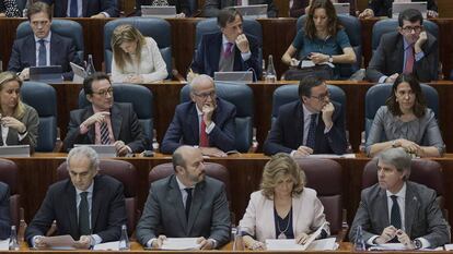 “Todo depende del candidato que designe Génova y no estaría mal que se consultara a los diputados más veteranos para encontrar a una persona que no despierte los recelos o la animadversión de los demás”, advierte otro parlamentario. “Entusiasmo no hay”, añade, “hay consternación. Algunos ya advertimos de que determinadas formas de actuar no eran el mejor camino”, opina en referencia a uno de los últimos movimientos de Cifuentes en plena huida por el caso máster: la entrega a la Fiscalía por parte del Gobierno de dos expedientes; uno sobre la expansión del Canal de Isabel II en Latinoamérica y otro, hace solo unos días, sobre el posible desfalco de decenas de millones de euros en la fallida Ciudad de la Justicia. Ambas actuaciones fueron lideradas por sus antecesores y compañeros de filas en el gobierno de la Comunidad. “Una cosa es que te encuentres una información conflictiva y la remitas a la Fiscalía, y otra envolverte en la bandera de la lucha contra la corrupción”, sentencia la misma fuente.