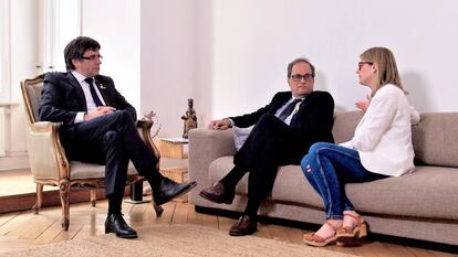 Por ejemplo, Puigdemont quiere que el nuevo president no use su despacho en el Palau, para así escenificar su condición de “provisionalidad”, explican varias fuentes de Junts per Catalunya. La tutela además se extendería a consultar con él la gran mayoría de decisiones. El plan original del expresident, con la llamada Casa de la República en Waterloo, era crear un sistema institucional paralelo “en el exilio”. Aunque Torra hace parte del círculo de confianza de Puigdemont, liderará un grupo de consejeros que no ha escogido. El presidente del Parlament, Roger Torrent, fijará hoy el día del pleno de investidura.