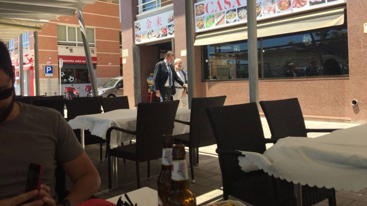 A Rajoy se le ha visto paseando relajadamente por el municipio costero y comiendo en un restaurante, ajeno al parecer a la batalla que se ha desencadenado entre varios aspirantes a sucederleal frente de la presidencia de su partido. Su imagen no ha tardado en circular por las redes sociales.