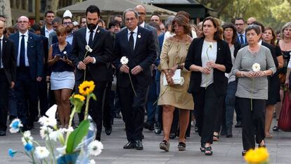 El exconsejero de Interior, Joaquim Forn, tuvo un papel muy destacado en la gestión de la crisis por los atentados que, hace un año, dejaron 16 muertos en La Rambla de Barcelona y en Cambrils. La situación actual de Forn, en prisión preventiva y procesado por presuntos delitos de rebelión y malversación por su participación en el referéndum independentista del pasado 1 de octubre, no ha impedido que el exconsejero estuviese muy presente en el homenaje a las víctimas del atentado de este viernes. Laura Masvidal, la esposa de Forn, ha formado parte de la comitiva oficial, ha representado a su marido y ha saludado al Rey Felipe VI justo después de que lo hiciera el presidente de la Generalitat, Quim Torra. Fuentes del Govern afirman que Masvidal le ha reprochado al monarca el procesamiento de Forn, al saludarlo con la frase "no soy yo quien debería estar aquí".