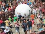 La localidad madrileña celebraba hoy el segundo y último boloencierro. Este se caracteriza por soltar una bola de 250 kilos de peso de poliespán en lugar de soltar reses, como ocurría hasta hace siete años. La bola recorre una cuesta abajo en la que los mozos se ponen delante, como si se tratara de toros.