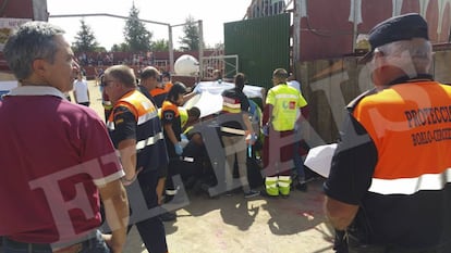 La víctima, de 29 años, ha sido aplastada por la enorme bola a la entrada de la plaza de toros