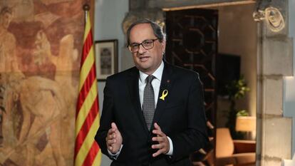 El presidente de la Generalitat, Quim Torra, ha vuelto a tirar de la historia para intentar encuadrar la actual situación política en Cataluña. En el mensaje institucional con motivo de la Diada, que se celebra este martes, Torra ha hecho un llamamiento a “resistir y avanzar” ante “las injusticias, el miedo, las prisiones o el exilio”. Ha planteado un paralelismo con la decisión que tomó, en 1713, la Junta General de Brazos de Cataluña (institución que convocaba la Diputación del General de Cataluña de manera extraordinaria en casos de emergencia o urgencia) justo antes del asedio a la capital catalana por parte de las tropas borbónicas. “Había que decidir entre la sumisión o la resistencia a Felipe V”.