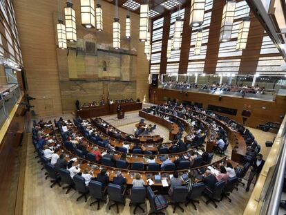 Los fondos buitres sobrevuelan la Asamblea mientras el presidente de la Comunidad, Ángel Garrido (PP) escucha cómo la oposición reacciona a su discurso de la primera jornada del debate sobre el estado de la región. "Asuma su responsabilidad", es el mensaje que le lanza el portavoz del PSOE, Ángel Gabilondo, y que comparten sus homólogos de Podemos, Lorena Ruiz-Huerta, y Ciudadanos, Ignacio Aguado. Responsabilidad porque el gobierno regional vendiera en 2013, durante la presidencia de Ignacio González, miles de viviendas sociales públicas a fondos de inversión privados. Responsabilidad porque ahora los inquilinos se enfrentan a subidas del alquiler que no pueden afrontar. Y responsabilidad porque Garrido admitió en una entrevista en EL PAÍS que aquella operación había sido un error. Todo ello a pesar de que el presidente de la Comunidad describió la venta "de interés público" y aseguró que no afectaba a los inquilinos. Además, su equipo recurrió la sentencia judicial que anula la venta de casi 3.000 pisos de protección oficial a un fondo.