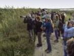 De nuevo, la combinación de una época formidable para ver pájaros en el delta (aunque Mularney opina que la luz es demasiado intensa para los detalles) y para disfrutar de sus muchos encantos (¡el esplendor rosado de las bandadas de flamencos!) con un programa realmente estupendo hace del DBF que impulsa la tienda de naturaleza Oryx una experiencia fenomenal. La tribu de los observadores de aves, desde los más obsesivos twitchers a eternos debutantes como Evelio P., que ayer precisó de varias horas de observación y varias llamadas al experto José Luis Copete para identificar una simple gaviota cabecinegra y al que ningunean las oropéndolas, ha encontrado en el festival su casa. Es que aquí puedes además de hacer amigos (algunos raros, eso sí) y aprender de lo lindo, adquirir una reproducción de una cigüeña para poner en el comedor, si te dejan; planificar un viaje ornitológico a cualquier parte del mundo, cambiarte los prismáticos, probarte una manta de camuflaje o que te dediquen un libro.